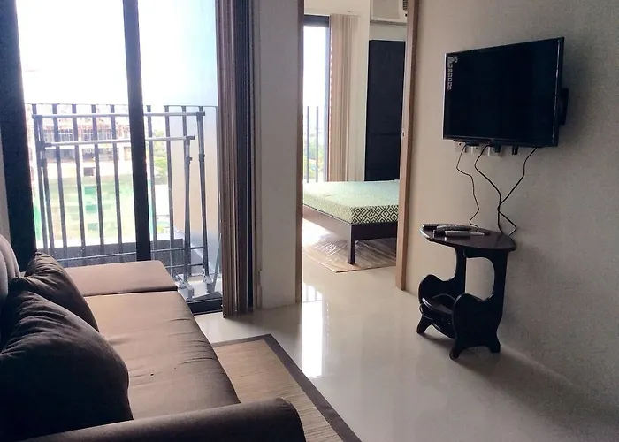 1Bedroom Lot8 Condo hotel offers rooms with a balcony and a dining area featuring an air conditioner, along with a flat-screen TV with satellite channels. Guestrooms also include an electric kettle, a fridge, and kitchenware.